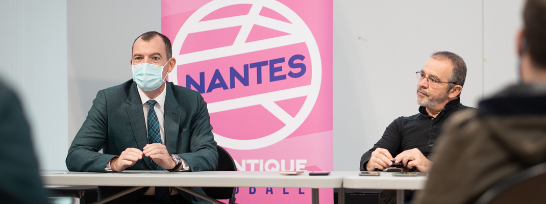 Arnaud PONROY, président du Nantes Atlantique Handball (NAHB) et Yoann CHOIN-JOUBERT, président-directeur général du groupe de développement territorial REALITES, ont officialisé hier soir la constitution, pour le club de l’élite française du handball féminin, d’une Société Anonyme Simplifiée dont REALITES devient l’actionnaire principal, aux côtés de l’association Nantes Atlantique Handball et de la société d’Arnaud PONROY, AZIMUT.