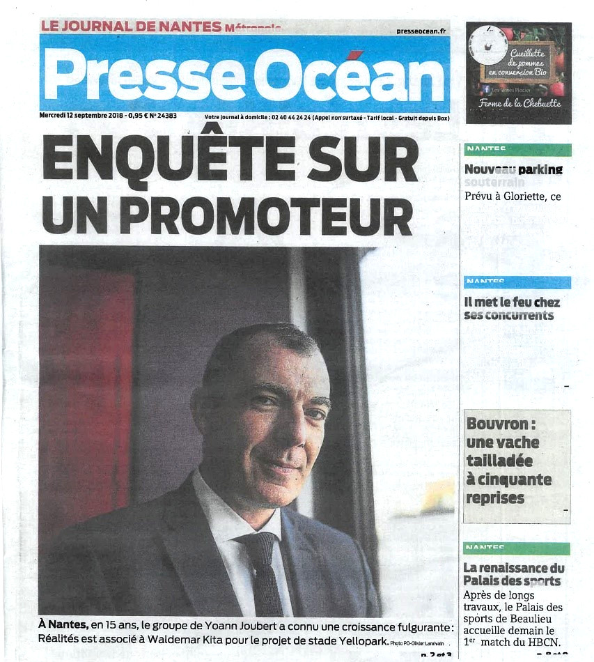 Le journal Presse Océan, dans son édition nantaise du 12 septembre a consacré sa Une au PDG de REALITES, Yoann Joubert.