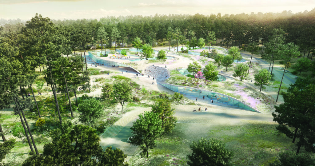 Entre le lac de Lacanau et une zone naturelle protégée, REALITES souhaite mettre en place un projet innovant autour du thème de la santé et du bien-être. Le site de 12 hectares présente un environnement naturel remarquable. Offrant un accès direct au Lac de Lacanau, le site est peuplé de végétaux de très grande qualité et de clairières ombragées avec lesquelles le projet devra composer afin d’en tirer le meilleur parti et ainsi proposer une programmation mesurée, adaptée au lieu, à ses spécificités et contraintes.